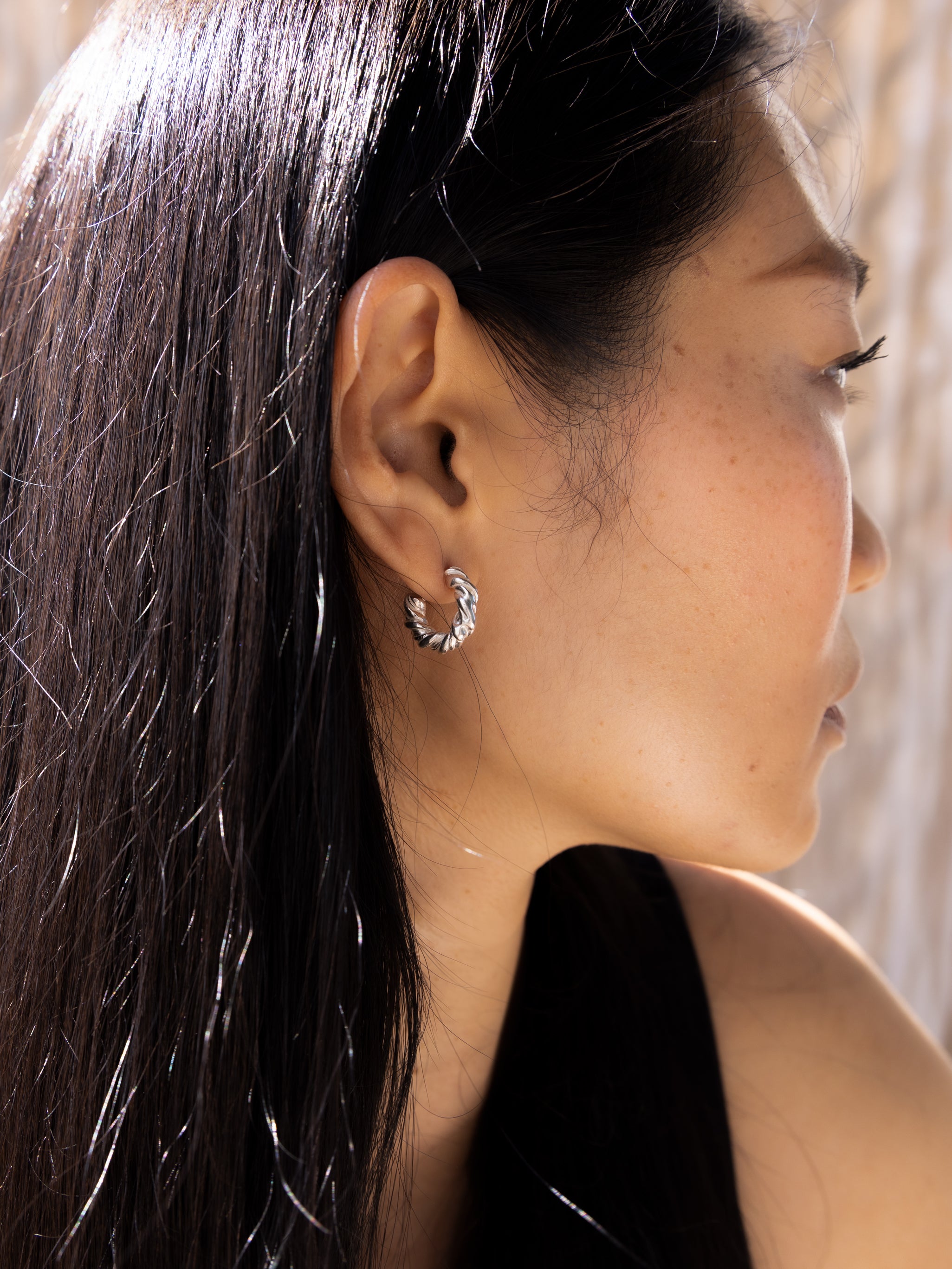 Add a little edge to your look with our new Twisted Hoops. Designed to elevate everyday ensembles, these organic chunky hoops are essential for the minimal twist.